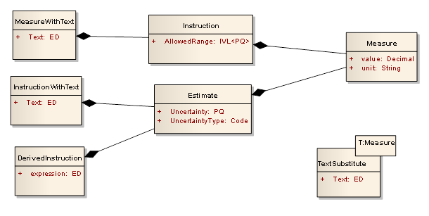 Lets take the measurement related notions as an example. The basic notion is a value with a unit. Sometimes, you might want to track how the data was estimated. Sometimes, you might want to just use some human text instead of or as well as the measurement. (it might say “About 6 foot”, for instance).