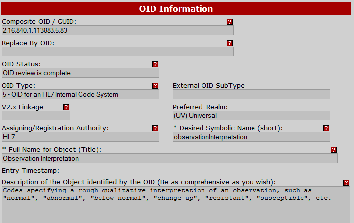 Also, where can I find the code systems used such as interpretationCode 2.16.840.1.113883.5.83? I am able to find random documents but no authority.