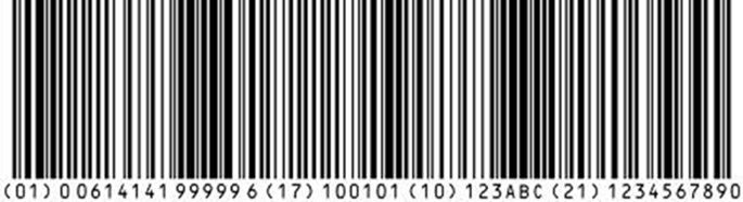 This is actually a dual representation. Most obviously, there’s the human readable information, which is (01)0061414999996(17)199191(10)123ABC(21)1234567890. But when a bar code scanner scans the bar code, what it might get depends on it’s configuration. The full representation of the barcode is ]C101006141419999961710010110123ABC