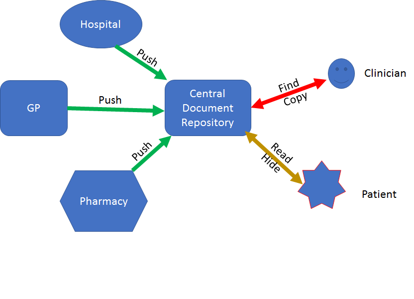 What this does is open up the system to all sorts of innovation, the most important of which is that the patient can authorise their care providers to exchange information directly, and build working clinically functional systems (e.g. GP/local hospital, or coordinated care planning), all without the government bureaucrats having to decide in advance that they can’t be liable for anything like that. That is, an actually personally controlled health record system not a government controlled one. And there’s still a MyHR for all the purposes it does exist for